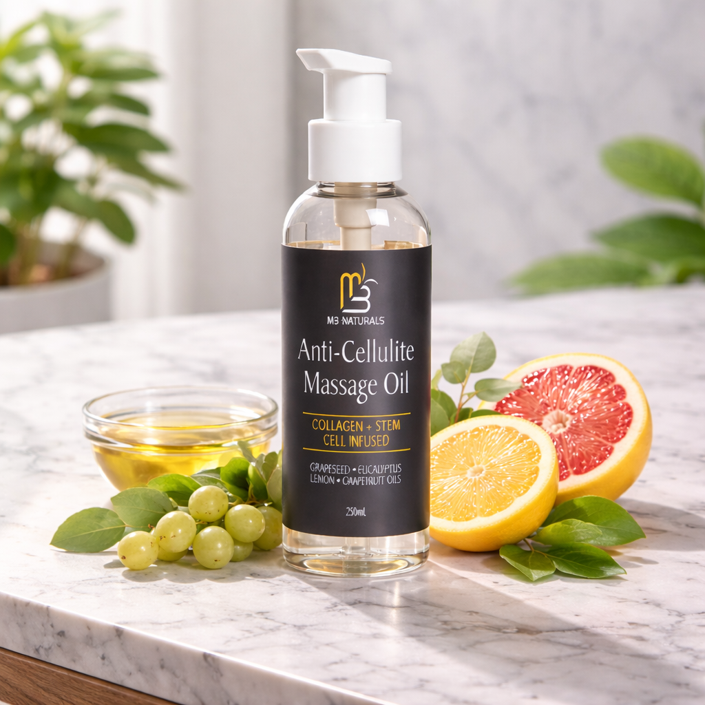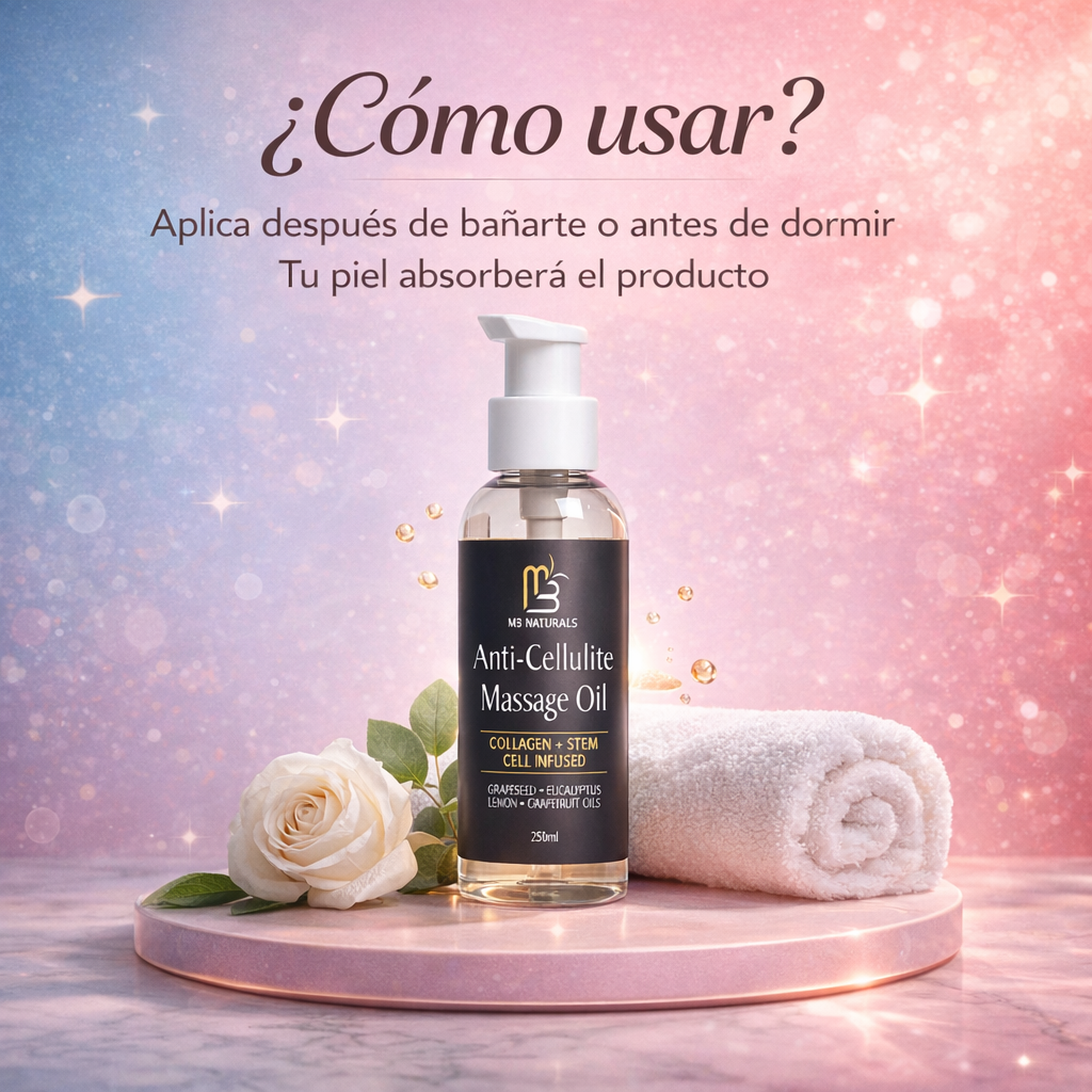 El Aceite Anticelulítico M3 Naturals está formulado con colágeno, células madre vegetales y aceites naturales que ayudan a mejorar la apariencia de la piel mientras la nutren profundamente. Con el uso constante, tu piel puede sentirse más suave, hidratada y visiblemente más firme.